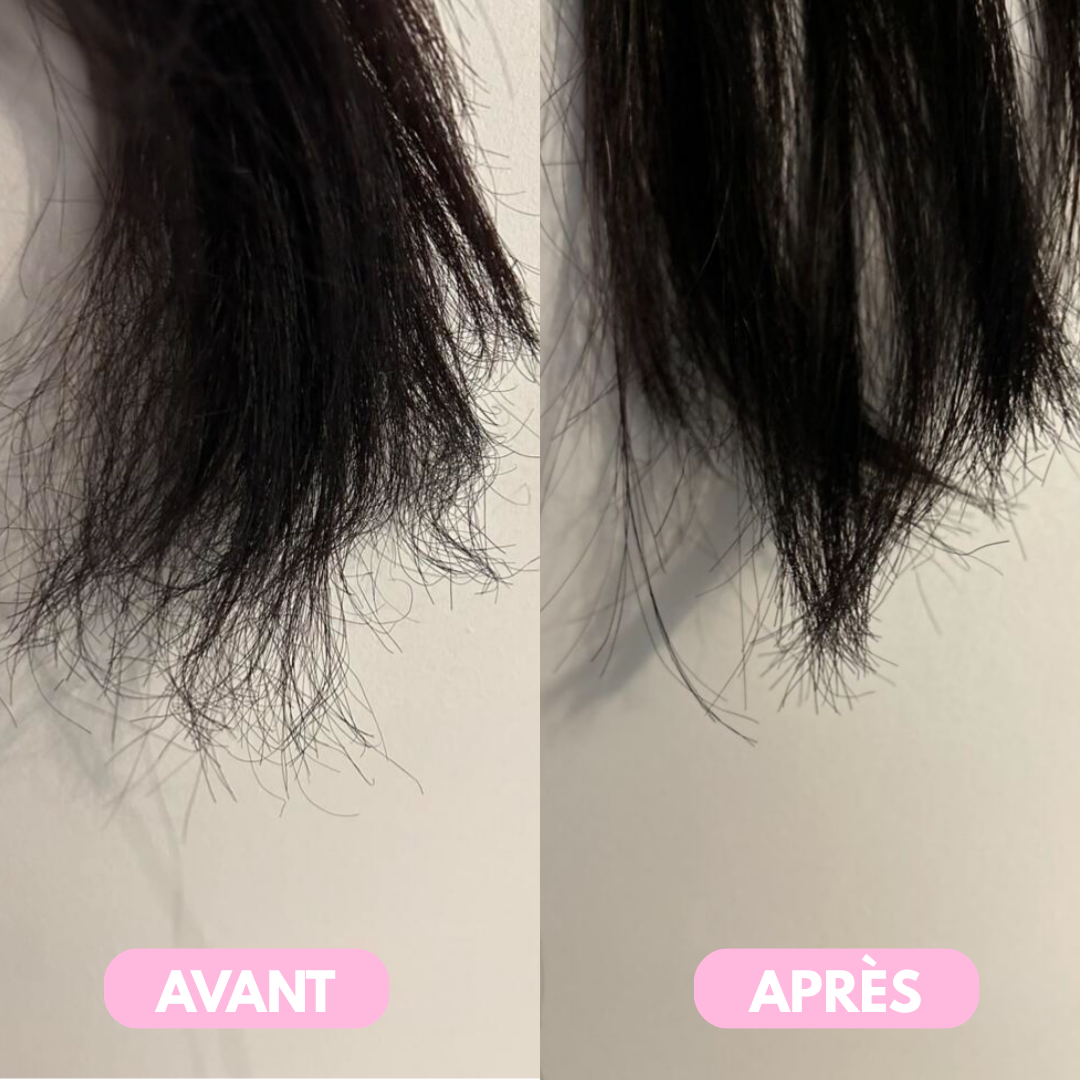 Pour entretenir durablement tes pointes sans les sensibiliser, on recommande une utilisation toutes les 6 à 8 semaines.Ce rythme permet de ralentir la réapparition des fourches, sans abîmer la fibre.
